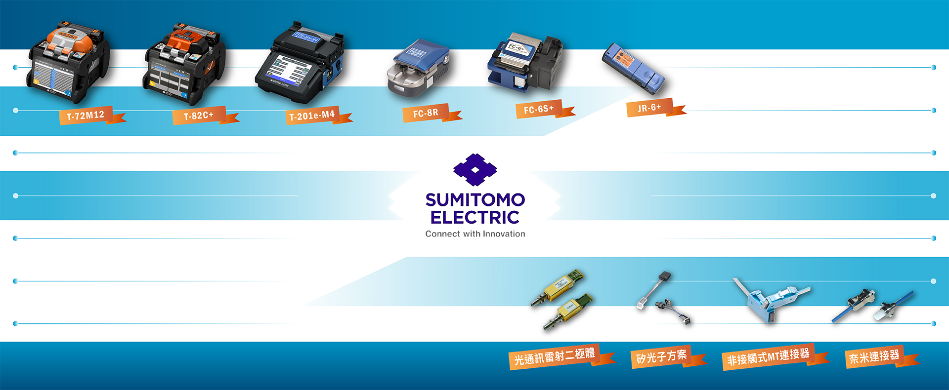 產品介紹PRODUCTS 產品介紹 光通訊光譜儀Optical Spectrum Analyzer 細節 光通訊光譜儀Optical Spectrum Analyzer 詳細介紹 光時域反射器Optical Time Domain Reflectometer 細節 光時域反射器Optical Time Domain Reflectometer 詳細介紹 光通訊多模組測量儀Modular Manufacturing Test System 細節 光通訊多模組測量儀Modular Manufacturing Test System 詳細介紹 光通訊波長計Optical Wavelength Meter 細節 光通訊波長計Optical Wavelength Meter 詳細介紹 光纖熔接機 T-82C+Fusion splicer 搭載人工智能熔接技術的 高精度纖芯對準光纖熔接機 細節 光纖熔接機 T-82C+Fusion splicer 搭載人工智能熔接技術的 高精度纖芯對準光纖熔接機 詳細介紹 光纖熔接機 T-72M12Fusion splicer 多芯光纖熔接機 細節 光纖熔接機 T-72M12Fusion splicer 多芯光纖熔接機 詳細介紹 光纖熔接機 T-201e-M4Fusion splicer 手持式多芯光纖熔接機 支持雙芯皮線熔接,最大可達4芯 細節 光纖熔接機 T-201e-M4Fusion splicer 手持式多芯光纖熔接機 支持雙芯皮線熔接,最大可達4芯 詳細介紹 光通訊雷射二極體Optical communication Laser Diodes 細節 光通訊雷射二極體Optical communication Laser Diodes 詳細介紹 X, Y 安規電容X、Y Safety Capacitor 細節 X, Y 安規電容X、Y Safety Capacitor 詳細介紹 SMD型電流檢出用精密電阻CHIP Current Resistor 細節 SMD型電流檢出用精密電阻CHIP Current Resistor 詳細介紹 鍍鋅鋼絲/鍍鋅鋼絞線 細節 鍍鋅鋼絲/鍍鋅鋼絞線 詳細介紹 最新消息NEWS 2022/9/14 2022914 單模帶狀光纜測量用光開關盒AQ3550 2022/4/15 2022415 住友電工數據中心解決方案自動光纖測試儀 2022/1/28 2022128 住友電工數據中心解決方案 PrecisionFlex™ MPO 盒式面板 2021/1/11 2021111 住友電工數據中心解決方案HSX高密度收容機櫃